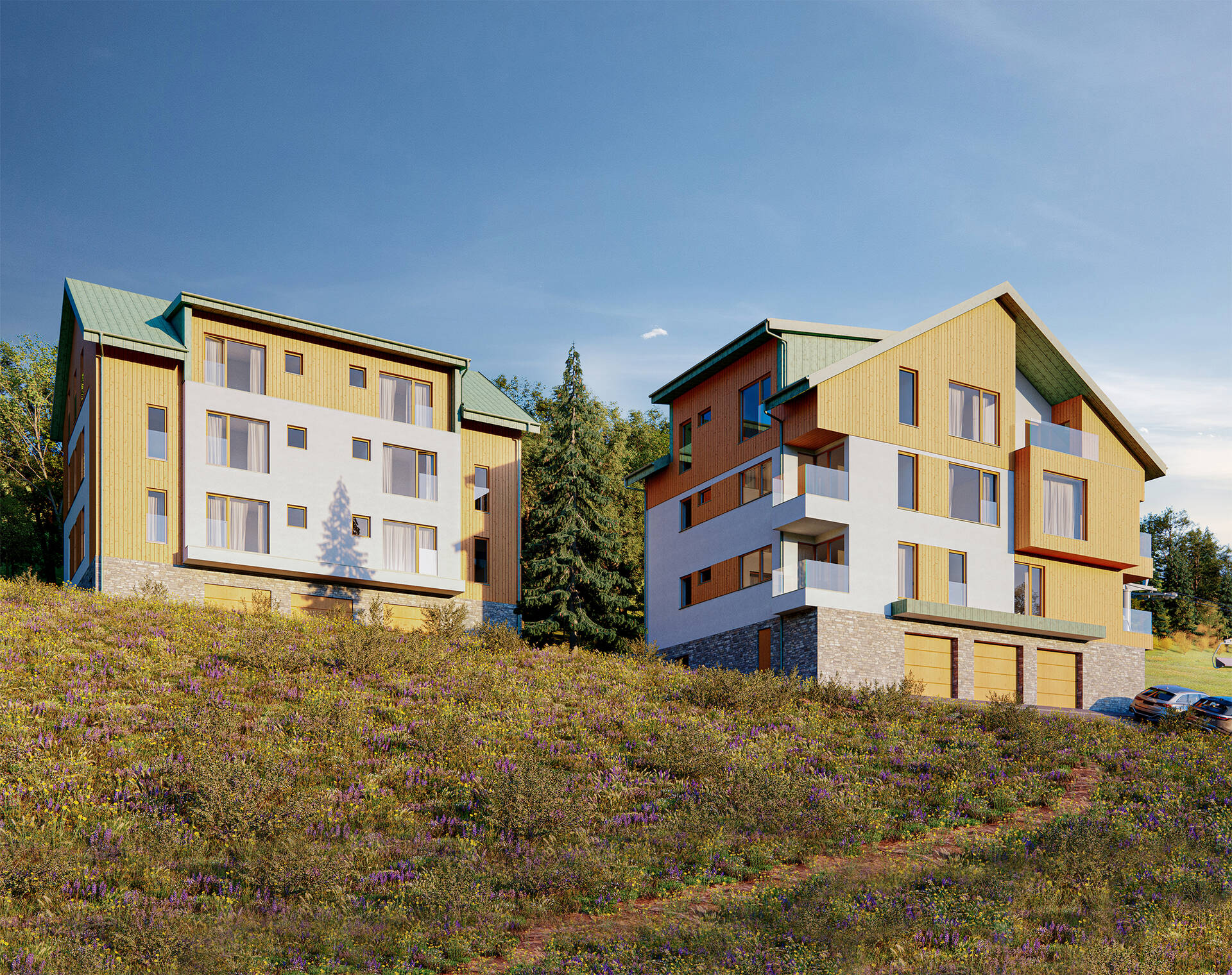 K dispozici je celkem 20 moderních apartmánů 1+kk a 2+kk o rozloze od 35 do 71 m2. se standardizovaným vybavením - kuchyně, dubové podlahy a některé mají balkón. Ke každému apartmánu náleží sklepní kóje v lyžárně i kolárně a možnost koupě parkovacího stání. Celkem je k dispozici 6 vnitřních a 13 venkovních stání.